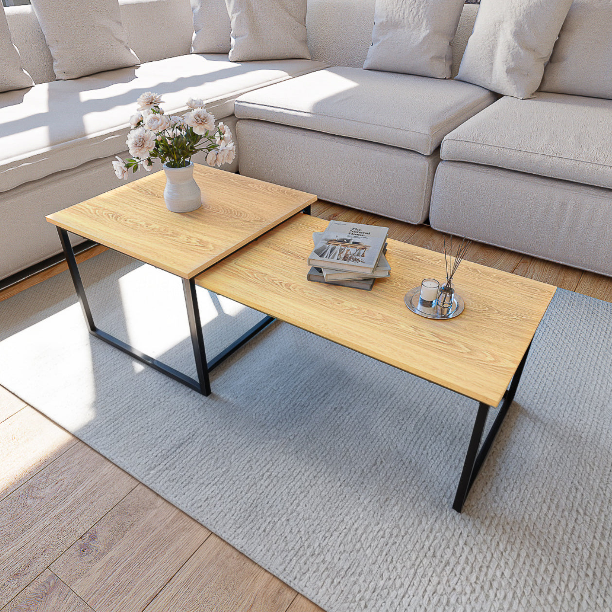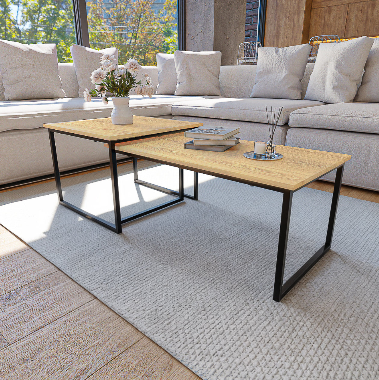 סט שולחנות לסלון דגם לוגאנו - צבע עץ
