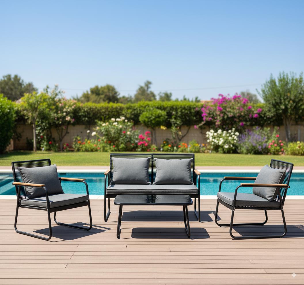 סט ריהוט לגינה / מרפסת בעיצוב מודרני ואלגנטי.